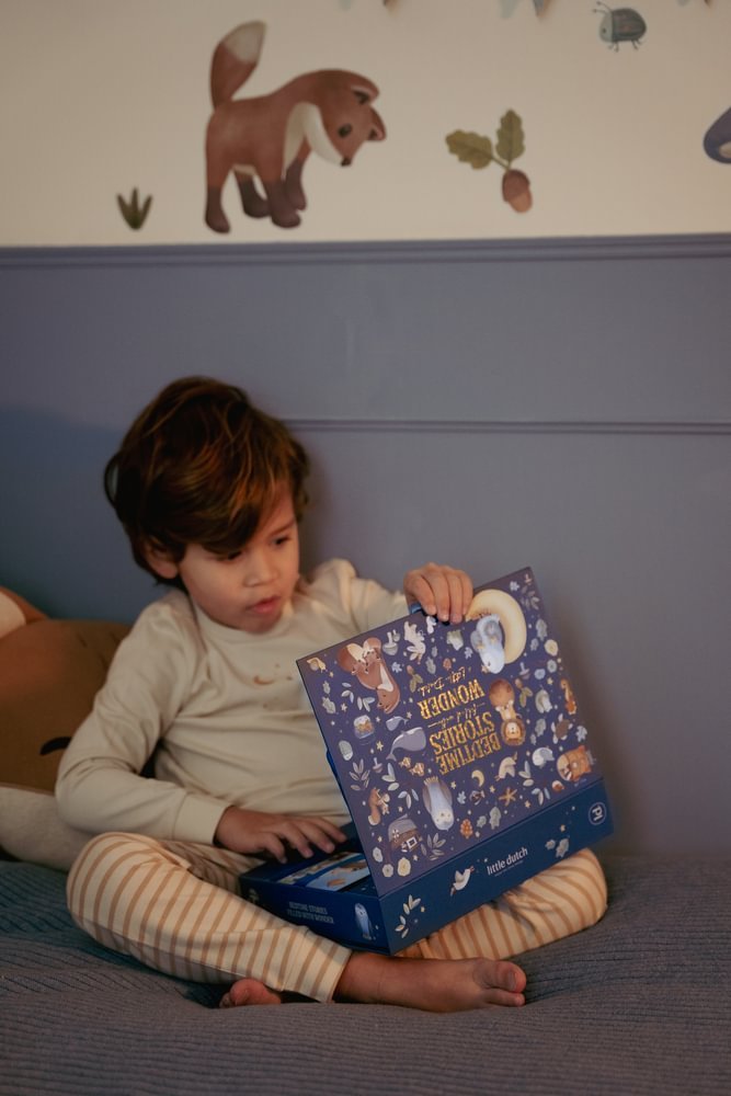 Projektorska baterijska lampa ima čvrstu drvenu dršku i radi na baterije, tako da se može ponijeti bilo gdje. Nakon priče, baterijsku lampu i sav pribor možete lako spremiti u prekrasnu kutiju za odlaganje. Savršeno za djecu koja vole otkrivati i doživljavati priče.