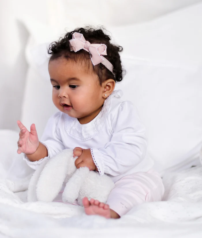 Malo francuskog šarma u kosi. Elegantna mašnica u nježnoj rozoj nijansi unosi dašak romantike u svaki outfit.