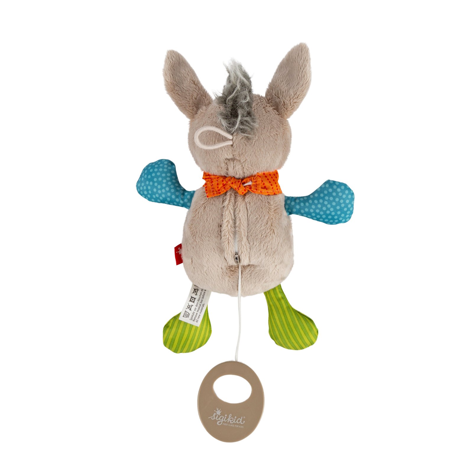 Ovaj slatki mali muzički magarac sa šarenim visećim udovima zabavlja mališane, nežno ih umiruje da spavaju i pruža umirujuću udobnost tokom noći.