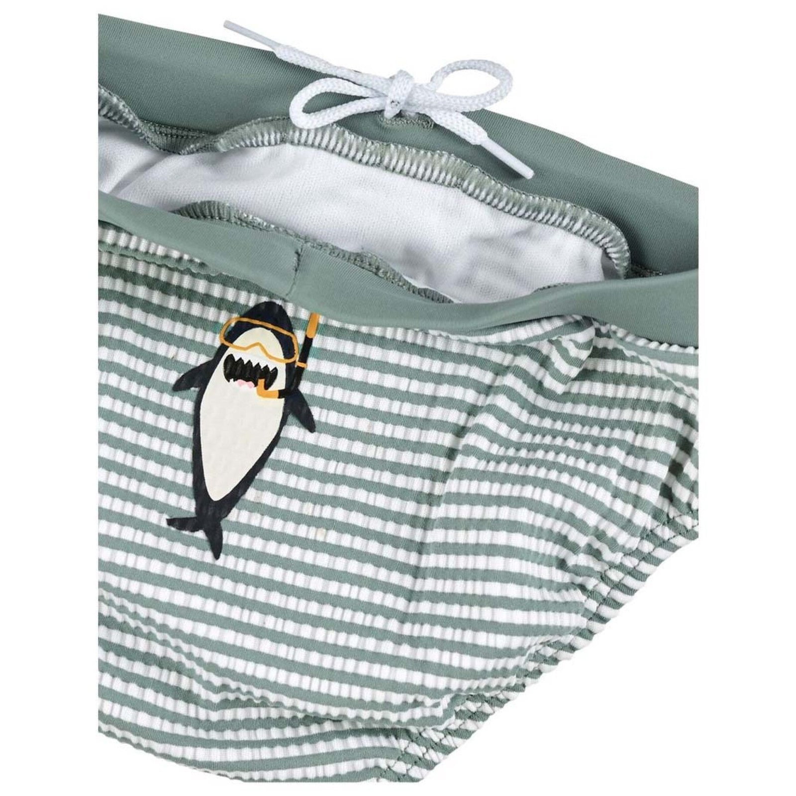 Prugasti kupaći kostim sa hladnim motivom ajkule napravljene su od udobne tkanine za kupaće kostime sa elastinom. Idealan je za plivanje i prskanje. Uz pomoć kabla na pojasu, širina se može podesiti. Za bebe i malu djecu koji još uvek nose pelene, samošivene pelene pantalone nude veoma dobru zaštitu od curenja u vodi ako nešto uđe u pantalone.Kratki kupaci kostim je takođe opremljen posebno visokim nivoom zaštite od sunca: UV 50+ štiti osetljivu kožu od jake sunčeve svetlosti. Dakle, ništa ne stoji na putu sunčanog dana u bazenu ili uz more, a zabava za kupanje je zagarantovana.