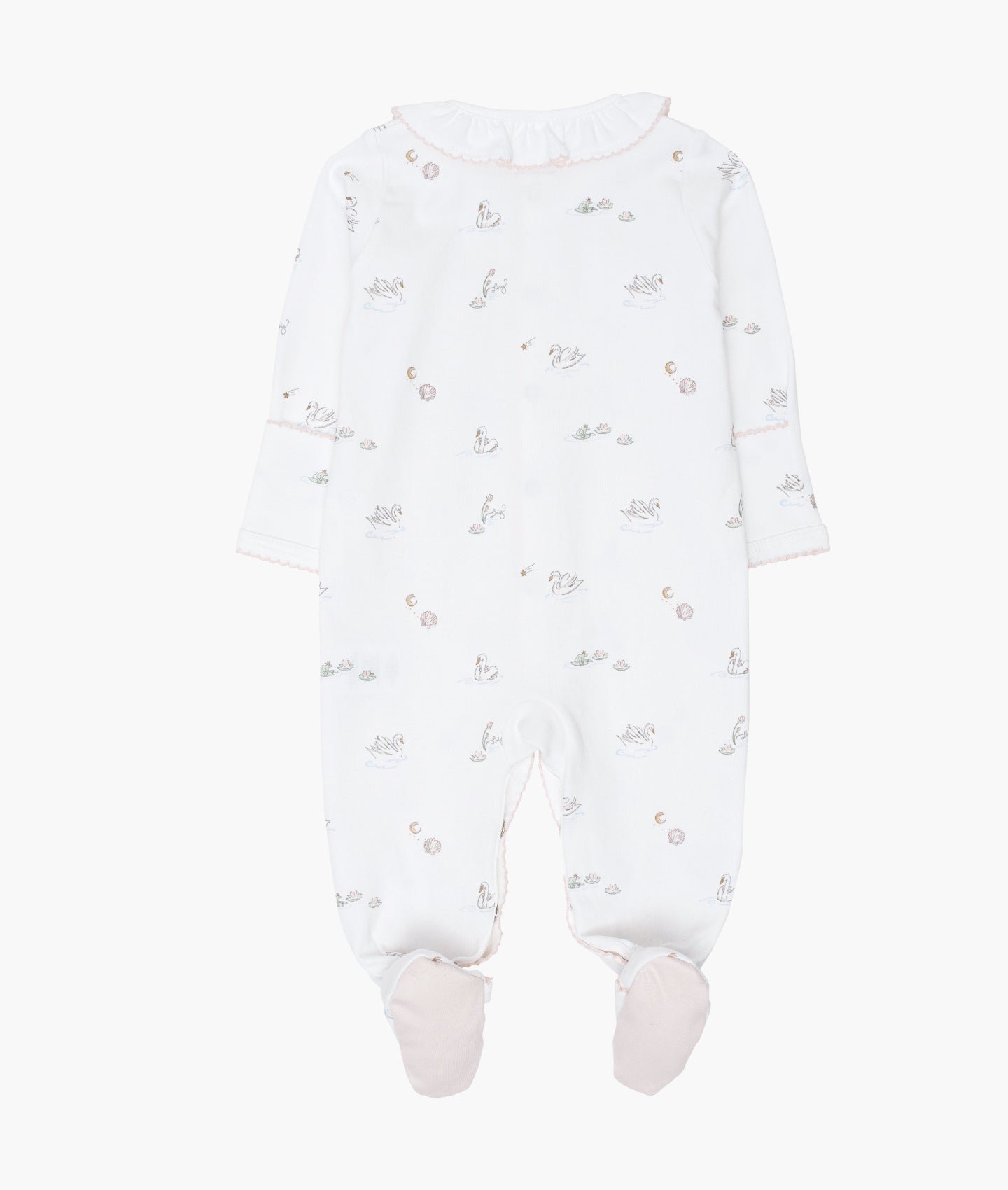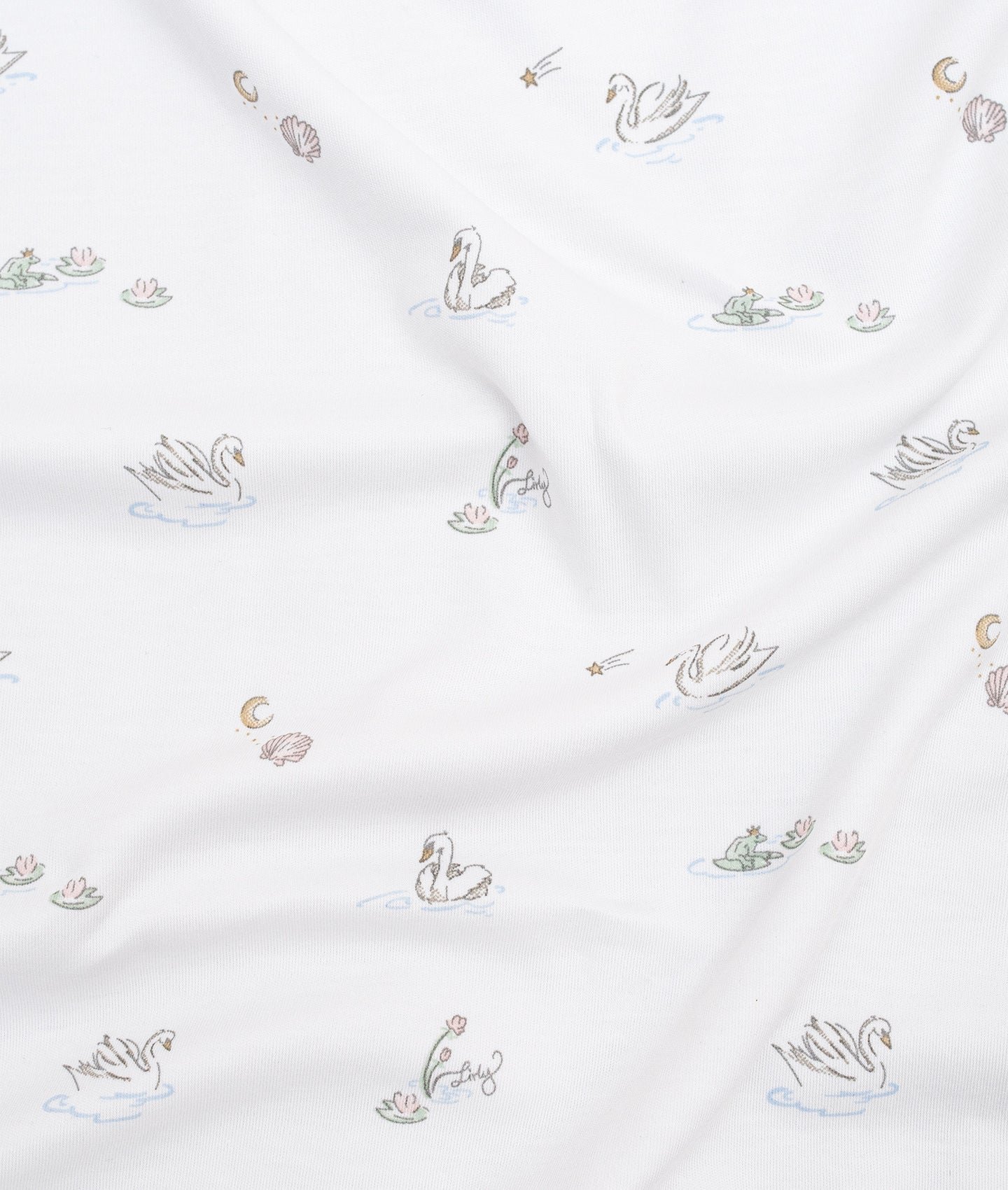 Ovaj slatki bodi s volanima i motivom labudova pruža udobnost i šarm. Izrađen je od mekog pima pamuka, idealan za osjetljivu bebinu kožu.