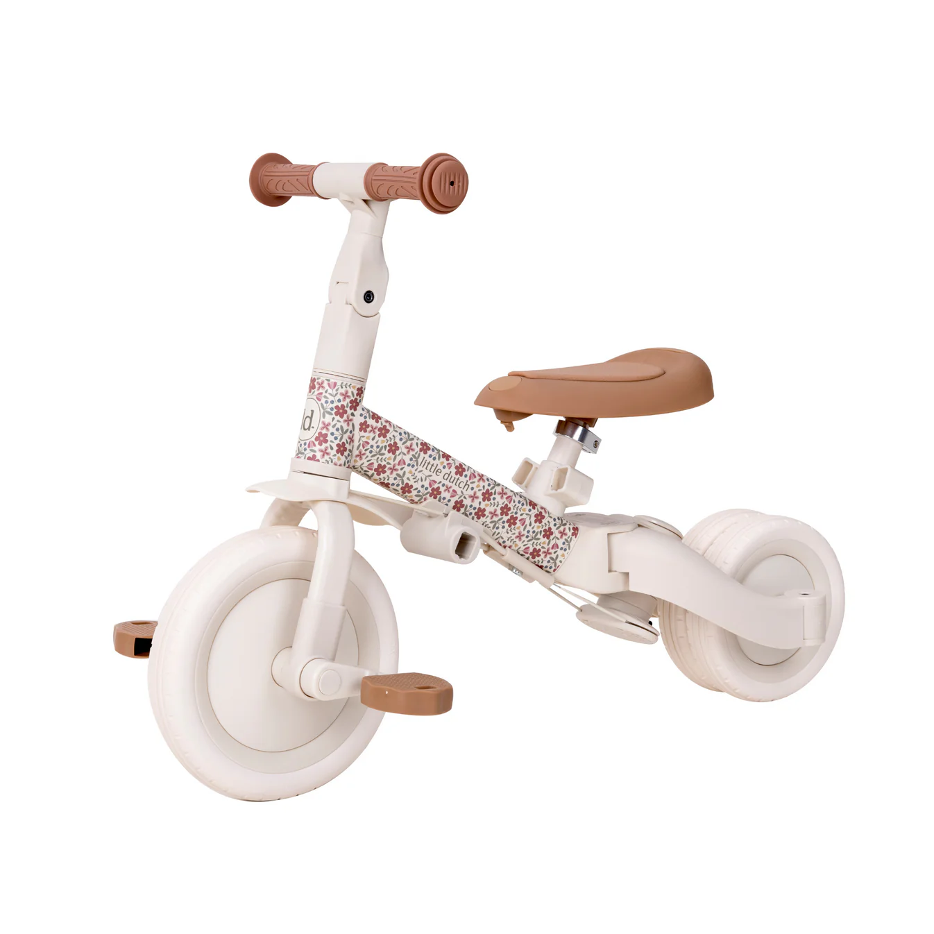 Hop, vrijeme je za izlazak! S ovim prekrasnim detaljnim 4-u-1 biciklom za ravnotežu u bijeloj i smeđoj boji, prve (biciklističke) avanture su napravljene na ovaj način. Idealan je za upoznavanje biciklizma na razigran način. Da li vaše dijete nije spremno da samostalno hoda ili vozi bicikl? Nema problema, ručka za guranje vam pomaže. Sigurnost za sve, zahvaljujući pojasu i sigurnosnom prstenu, koji se lako mogu ukloniti ako više nisu potrebni. Od tricikla do bicikla za ravnotežu u trenu – a pedale? Možete ga lako spremiti ispod sjedišta! Lagan, kompaktan i podesiv za djecu od 1 do otprilike 3 godine.