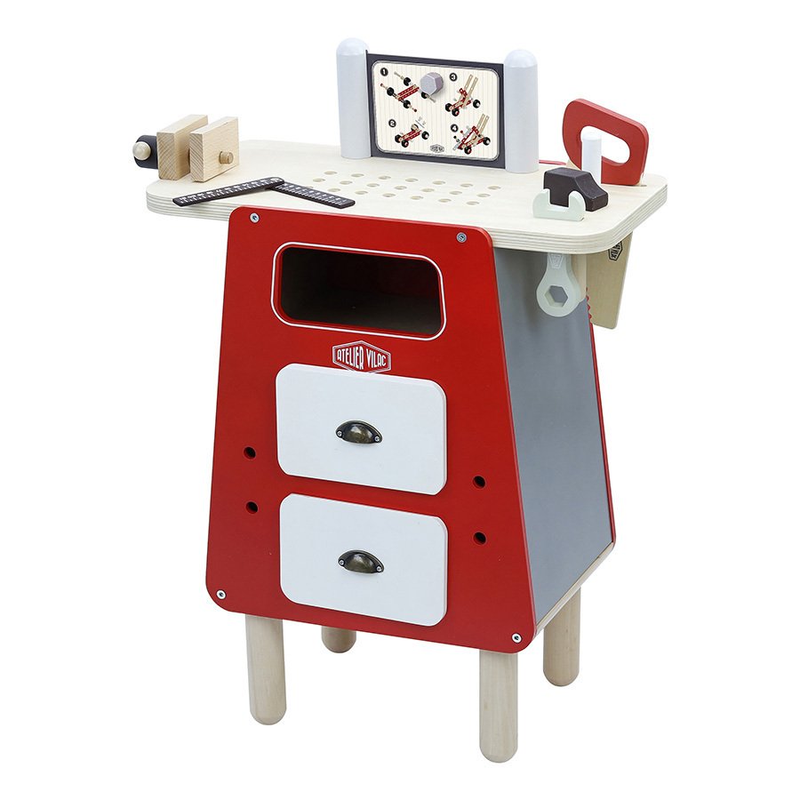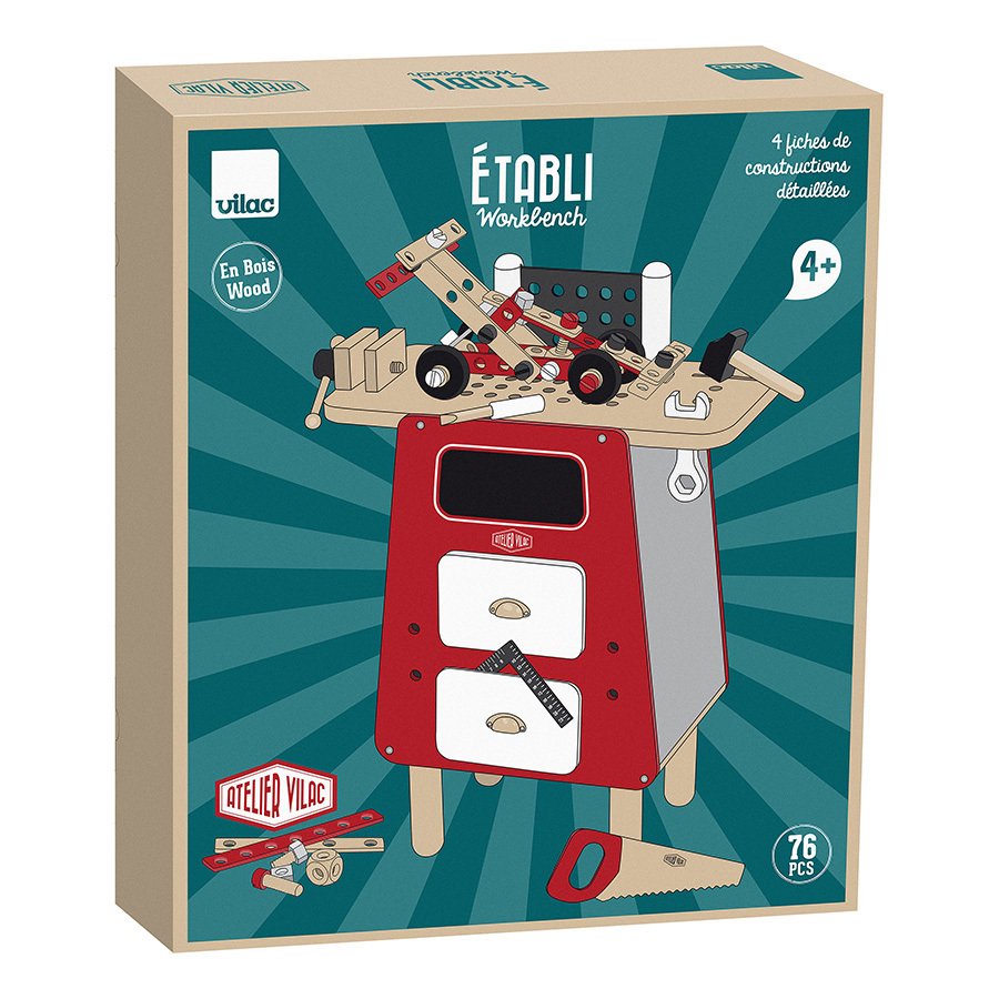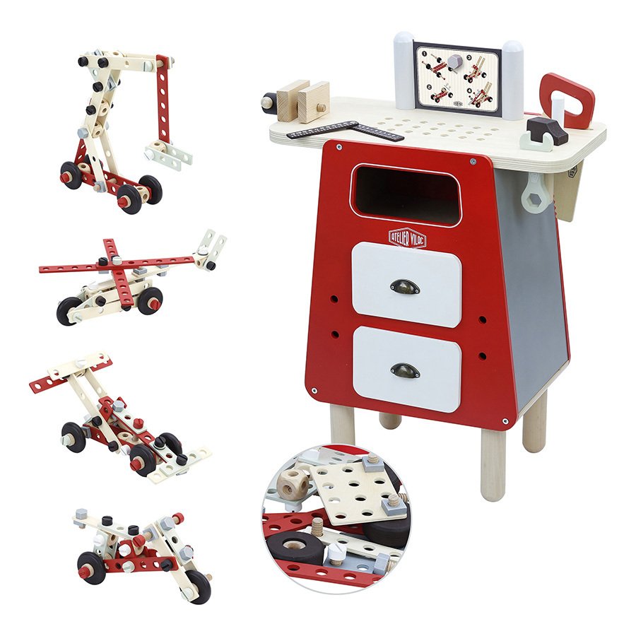 Vilac drveni sto sa alatom kroz igru u isto vrijeme razvija motoriku i kreativnost naših najmlađih. Set sadrži 78 djelova.